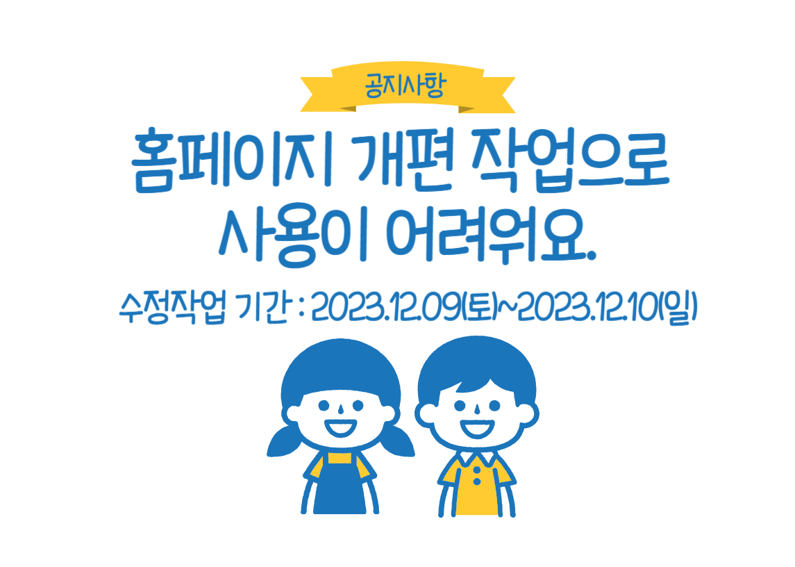 홈페이지 개편 작업으로 인해서 12/9(토)~10(일) 동안 홈페이지 기능 사용에 어려움이 있을 수 있습니다.