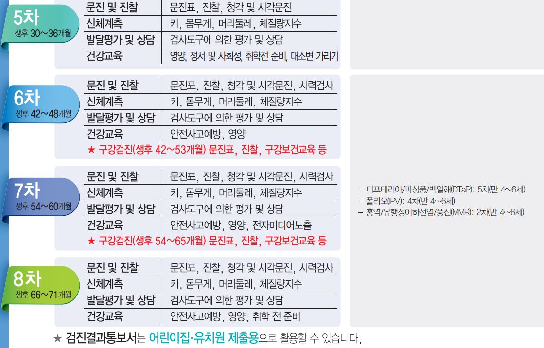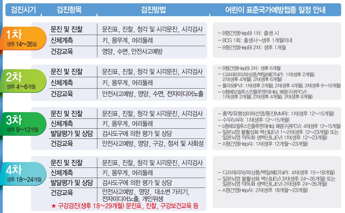 건강검진 및 예방접종 시기(아래표) 참고바랍니다.