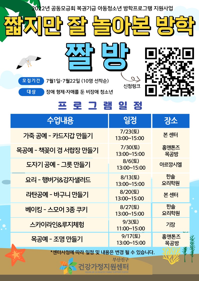 우리아이발달지원단 협력 기관인 부산진구건강가정지원센터의 프로그램을 공유드립니다! : )