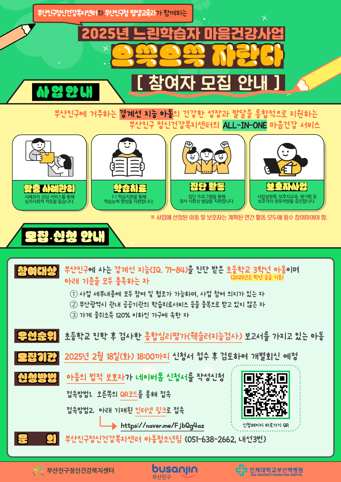 부산진구정신건강복지센터에서 실시하는 2025년 느린학습자 마음건강사업